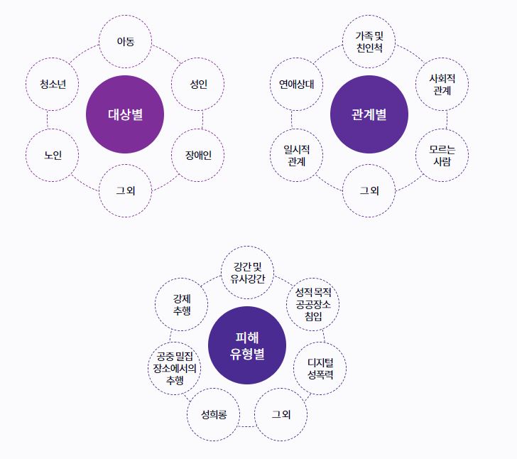 성폭력은 상대방의 의사에 반하여 가하는 모든 성적행위로 신체적,언어적,정신적 폭력을 포괄하는 광범위한 개념입니다.(성적자기결정권 침해)