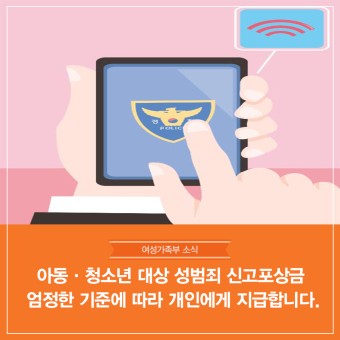 문의 여성가족부 아동청소년성보호과(02-2100-6409(포상금접수 및 처리), 6416(제도전반 등))