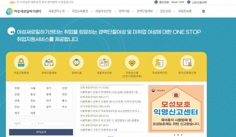 경력단절여성 취업지원(새로일하기센터)