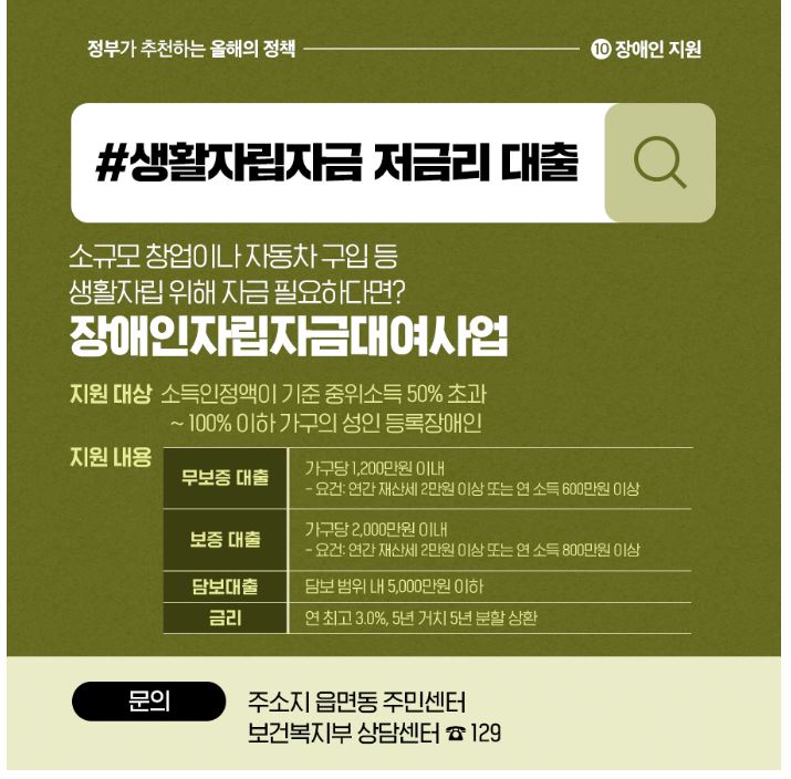 장애인자립자금 대여(저소득장애인에게 금리 최고 연2%로)