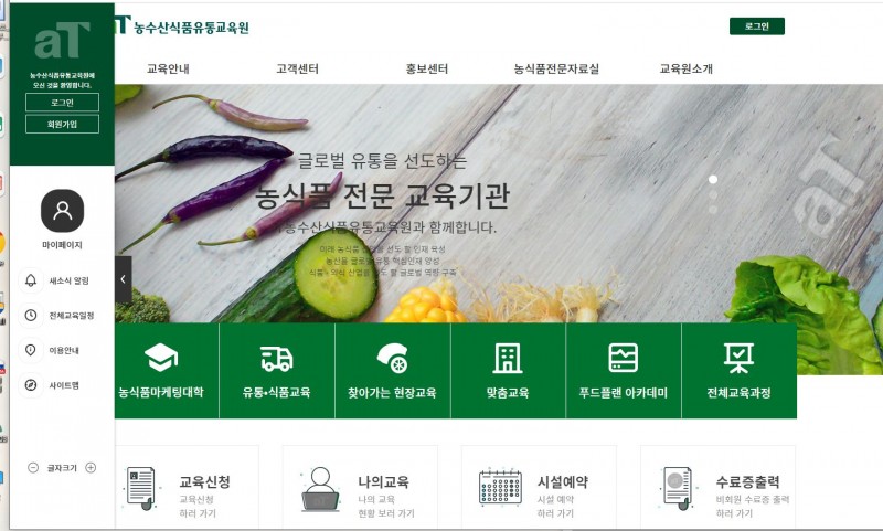 농식품유통 교육훈련 지원(http://edu.at.or.kr)