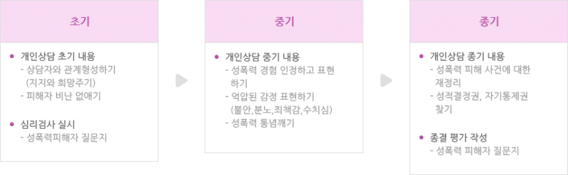 심리적 지원 성폭력 피해로 인한 심리적 상처와 후유증에 대한 지속적인 심리상담