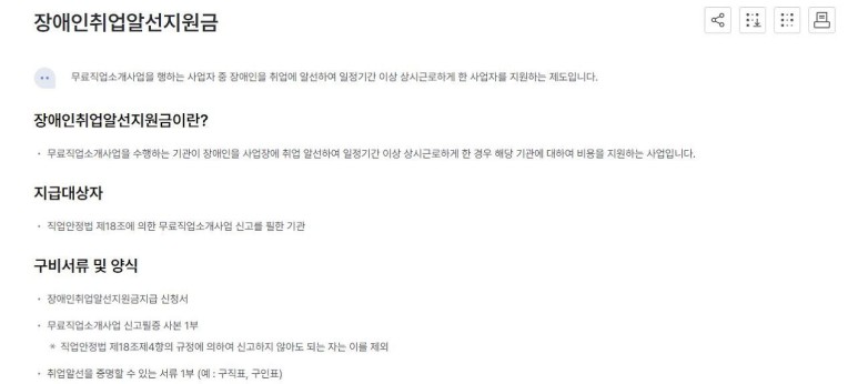 장애인 취업알선 지원금 지급