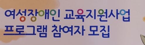 여성장애인 교육지원-장애와 여성이라는 이중 제약으로 교육 기회를 갖지 못한 여성 장애인들에게 교육서비스를 제공하여, 여성장애인의 역량강화를 통한 사회참여 기회 확대 및 삶의 질 개선에 기여 주요내용전화문의: 해당지역 시군구청(126)신청방법: 읍면동 및 사업수행기관 방문 신청접수기관: 보건복지부콜센터 지원대상등록여성장애인