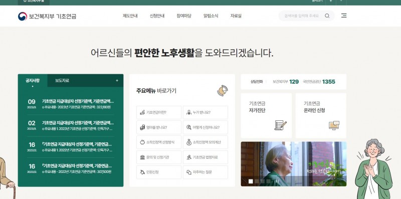 문의처 -보건복지상담센터(129) -국민연금공단 콜센터(1355)