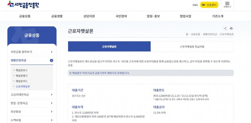 근로자 햇살론(저신용, 저소득 근로자에 대한 보증부대출을 통해 금리부담을 완화할수 있음)