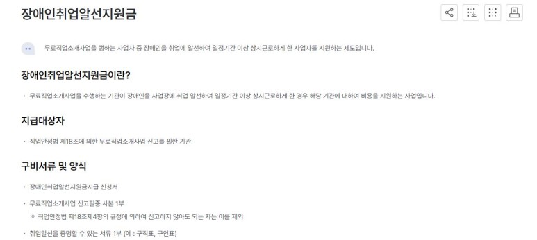 -무료직업소개소 장애인 취업알선에 대한 지원금 지급(10~30만원)