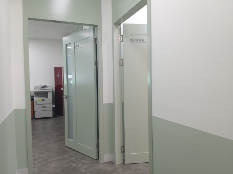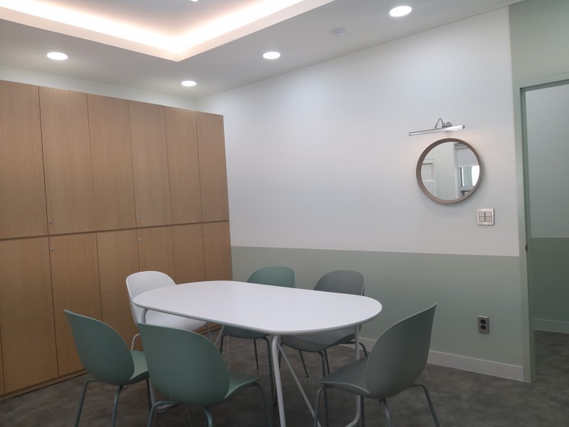 전체적으로 안정적이고 고급스러운 색으로 마음을 밝게 해주는 변화된 상담소 분위기가