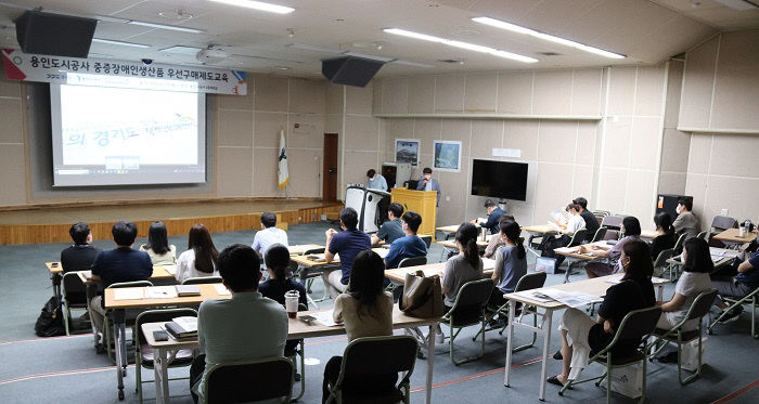 용인도시공사(사장 최찬용)는 19일 중증장애인 생산품 구매 활성화를 위해 공사 직원을 대상으로 '우선 구매제도 교육 및 중증장애인 생산품 구매 컨설팅'을 실시했다.