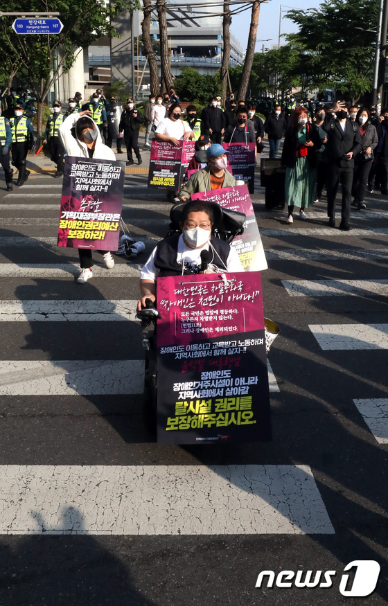 장애인 이동권 보장 위한 예산 촉구하는 전장연 페이지 정보 작성자 천안장애인성폭력상담소 조회 5,038회 작성일 22-05-17 14:12 본문 전국장애인차별철폐연대 회원들이 17일 오전 서울 신용산역에서 삼각지역까지 장애인 권리예산 22년 추경 반영을 촉구하는 행진시위를 하고 있다 목록 이전글장애인 근로자에 안정적 근로 여건 조성 22.05.17 다음글오세훈 “장애인 시내버스요금 무료화 추진하겠다” 22.05.17
