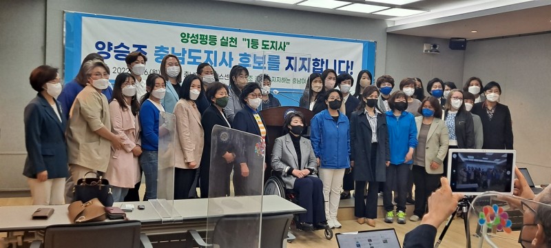 지역 40개 여성단체들은 이날 충남도청 프레스센터에서 기자회견을 열고 "양 후보는 지난 4년 동안 아이 키우기 좋고 여성이 행복한 충남을 위한 수많은 선도적인 정책을 통해 우리 여성들에게 새로운 희망을 주고 든든한 울타리가 돼 주었다"며 "양성평등을 실행할 수 있는 적임자"라고 밝혔다.
