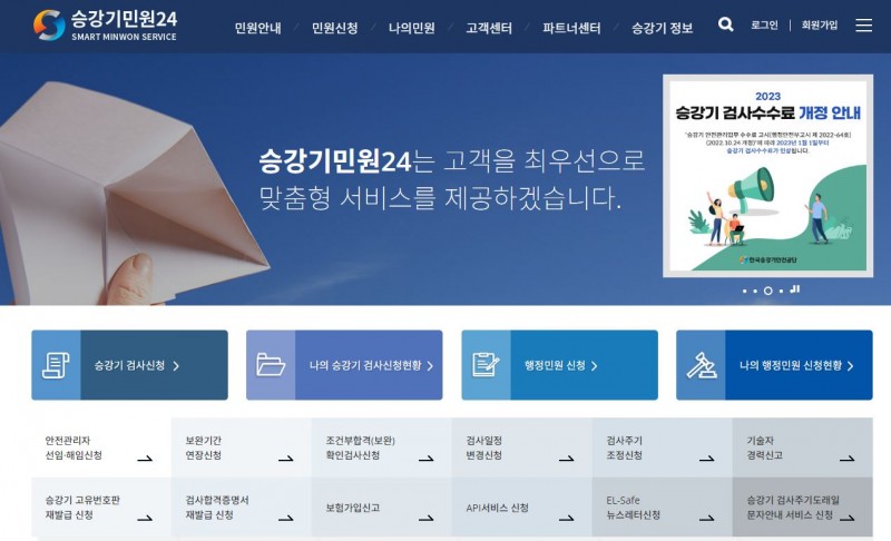 -승강기민원24 홈페이지 :minwon.koelsa.or.kr