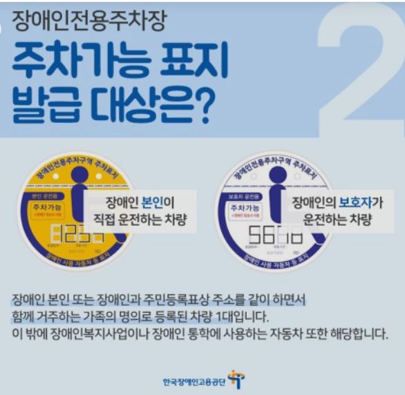 지원내용 -주차가능 표지 부착 차량에 대해 장애인 전용주차구역에 주차 가능