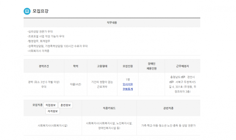천안장애인성폭력상담소 상담원모집 페이지 정보 작성자 천안장애인성폭력상담소 조회 1,866회 작성일 24-03-22 11:50 본문 천안장애인성폭력상담소 상담원 모집 목록 이전글2023년 세입세출결산서 및 후원금 수입지출명세서 공고 24.04.04 다음글대한적십자사 천안위례성봉사회 창립 10주년 쌀40kg, 라면 6박스 , 세제 후원해주셨습니다. 24.03.19