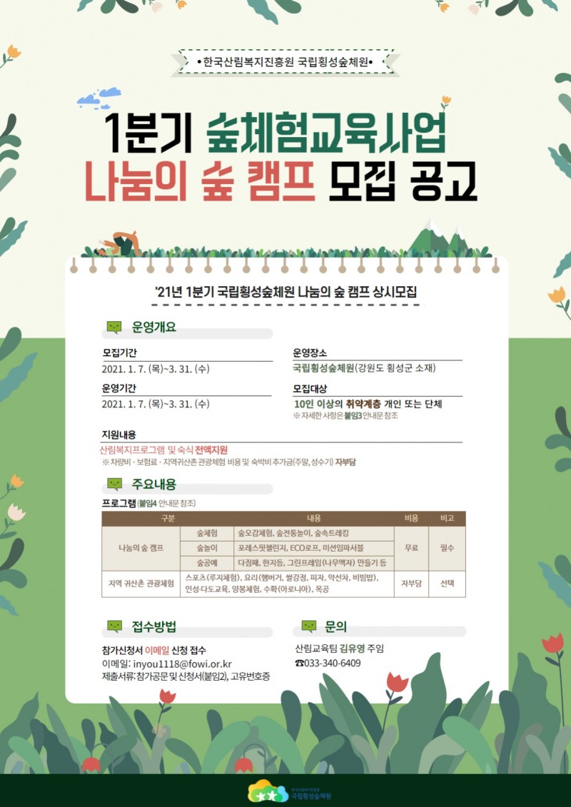1분기 숲체험교육사업 나눔의 숲 캠프 모집 공고